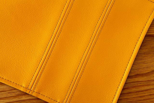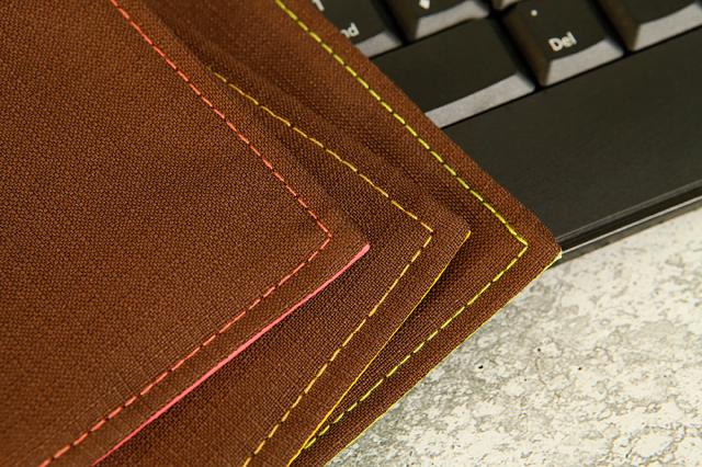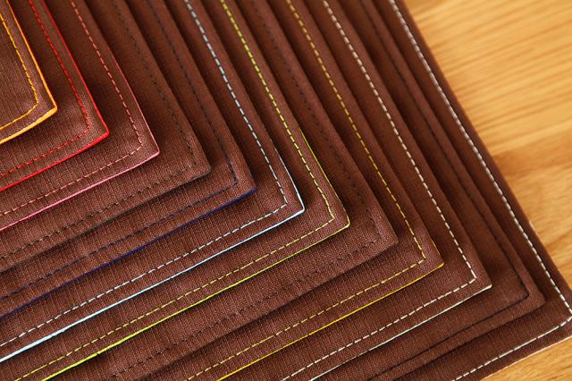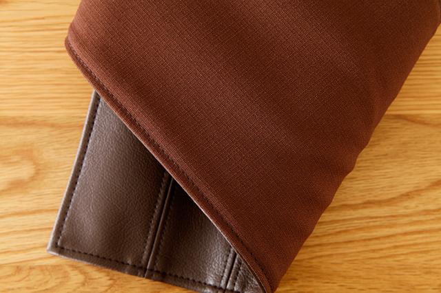 裏面の生地は柔らかい印象の茶系色の生地。裏生地は全カラー共通ですが、ステッチは表の生地カラーと同色のステッチを入れて可愛らしく仕上げました。