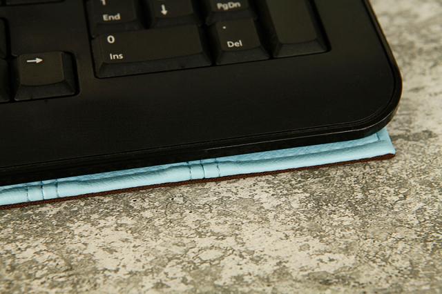 キーボード使用時は、カバーを外してキーボードの下に敷くようにすれば邪魔になりません。