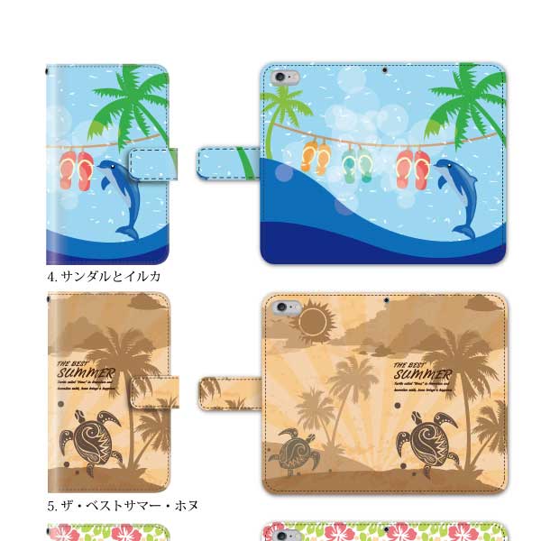 Android One S2 スマホケース 手帳 アンドロイド 夏 海 ホヌ イルカ ハワイ ハイビスカス 手帳型ケース