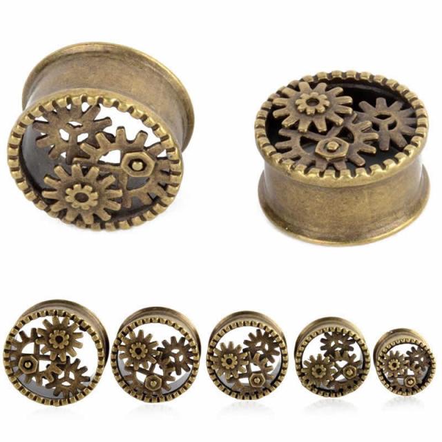 古時計 ダブルフレアアイレット 0ゲージ 0G 00ゲージ 00G 12mm 12.0mm ボディピアス サージカルステンレス316L ゼンマイ 機械仕掛け メンズ レディース アンティークゴールド おもしろ ダブルフレア型ボディーピアス 古びた感じ おしゃれ 面白い ユニーク 歯車 オモシロ ギア