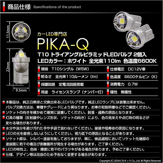 T10 LED ライセンスランプ トライアングルピラミッド 110lm ホワイト 6600K 2個 ナンバー灯 3-C-4