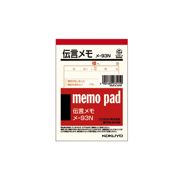 【メール便発送】コクヨ メモ 伝言メモ B7 80枚 メ-93N