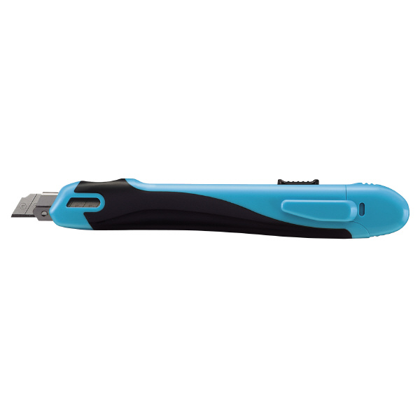 ●切るとき・折るとき・交換するときに安心なカッターナイフ。●切るときの安心/1:刃先にフッ素加工を施し、糊の付きにくさ大幅アップ!切れ味を長く保ちます。2:センタースライダーなので安定した状態で本体を握ることができます。3:刃こぼれしにくい、2段刃付け刃を採用しています。4:刃をしっかり固定するロック機能付き。5:左右両用設計。●折るときの安心/正しい位置で、正しい方向に折れる刃折具付き。フタをすれば、収容した刃が飛び出しません。●交換するときの安心/刃に触れずに刃を交換可能(シリーズ製品の替刃ケースを使用した場合)