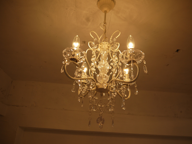 - シャンデリアを探していて 他店と同じ様なのに 値段が安かったので心配でした。開けて見たときは軽くてちゃちかと思ったのですが、取り付けて点灯してみたら意外と豪華だったので 満足です。