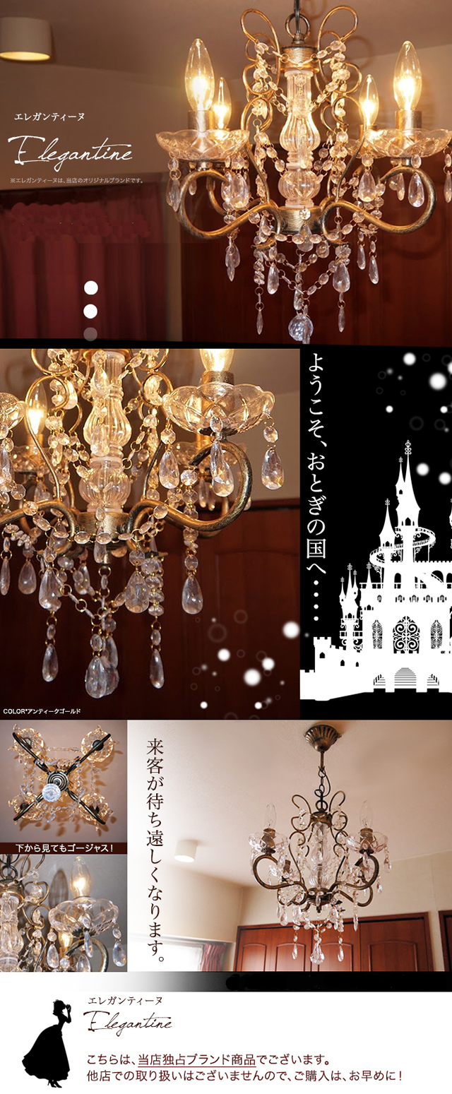 シャンデリア「エレガンティーヌ」 LED電球対応シャンデリア ルネサンス アンティーク シャンデリア 姫系 アンティーク調