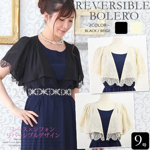 ボレロ 結婚式 ボレロ レース シフォン 半袖 結婚式ボレロ メール便 リバーシブルデザインシフォンとレース重ねボレロ 9号サイズ 半袖 パ