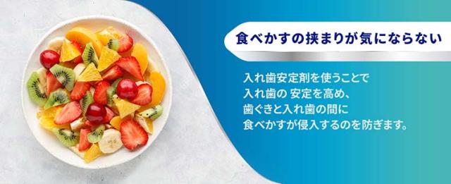 ●入れ歯と歯ぐきの隙間を密封し、食べかすなどの侵入による歯ぐきの痛み、入れ歯と歯ぐきの部分接触による痛みをやわらげます。