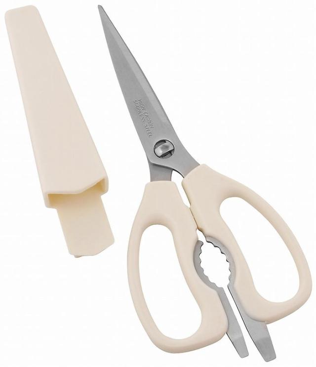 注意:ケースをマグネットで固定する際は、必ず平らな面を選び、磁石と吸盤でしっかり取り付け、安定していることを確認してください。ハサミをケースから出し入れする際は、強い力を加えないでください落下する恐れがあります。コチコチに凍っている冷凍食品など、極端に固いものには使用しないでください。調理やお手入れの際は、手や指を傷つけないよう注意してください。また、ハンドルの間のギザ刃に手や指を挟まないよう慎重に行ってください。ギンナンなどを挟んだままハンドルをたたいたり、ぶつけたりしないでください。ビンのネジフタを開ける際は、ビンをしっかり固定させてから行ってください。刃先で缶のフタなどをこじ開けたりしないでください。絶対に火のそばに置かないでください。