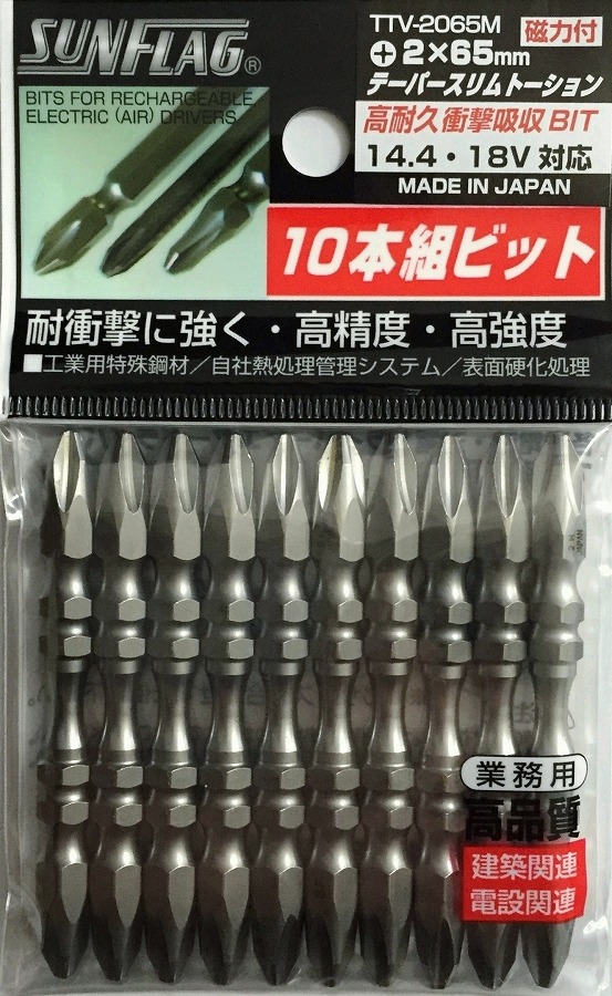 新亀製作所 SUNFLAG(サンフラッグ) テーパースリムトーションビット +2×65 10本組 No.TTV-2065M
