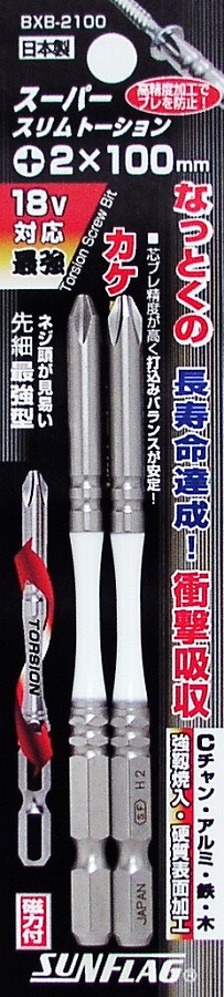新亀製作所 SUNFLAG スーパースリムトーションビット +2×100mm BXB-2100