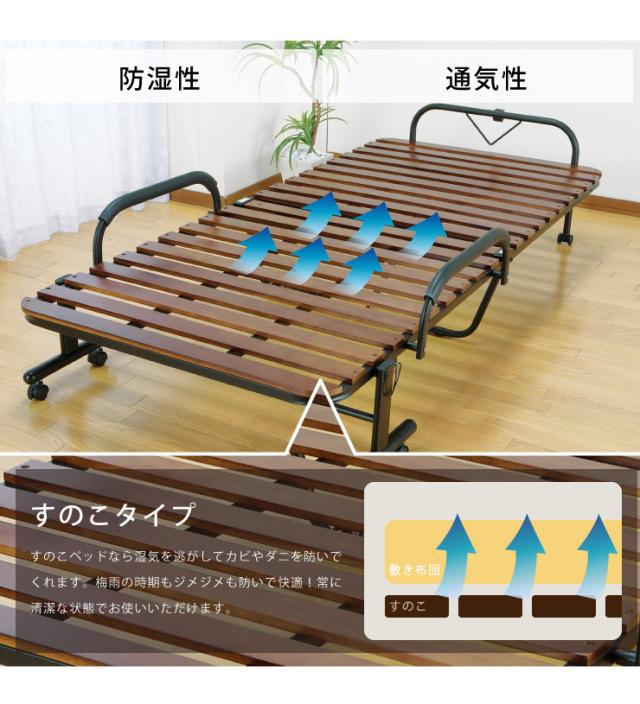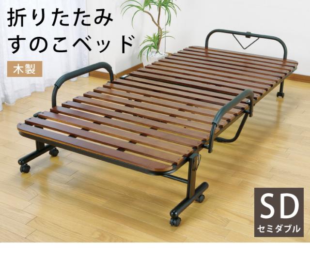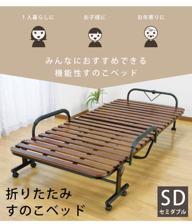 ベッド 折りたたみベッド すのこベッド 桐製 木製 すのこ 折りたたみ キャスター付き セミダブル(代引不可)【送料無料】