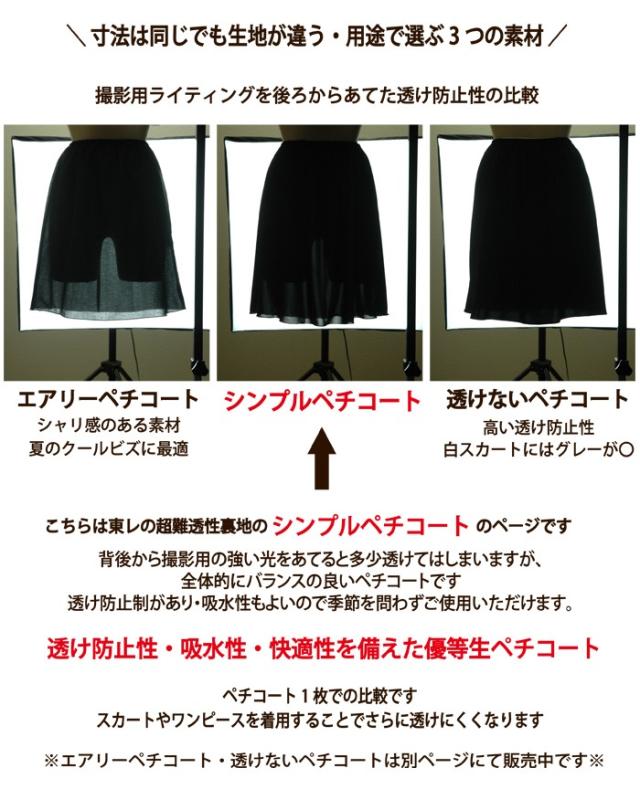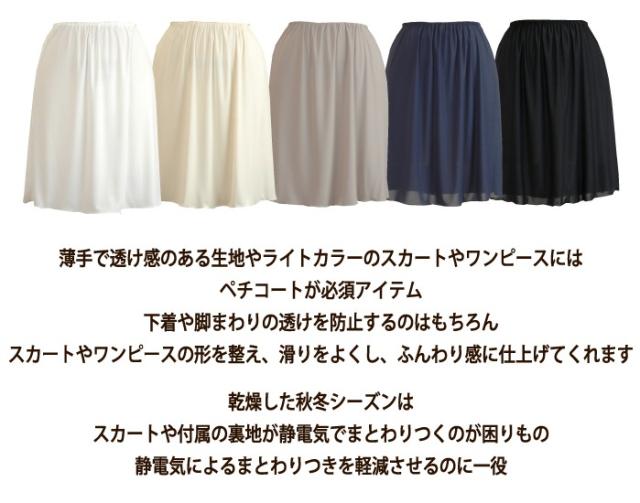 さらさら快適 シンプルペチコート 透け防止 日本製 35丈/40丈/45丈/50丈/55丈/60丈【 静電気防止 ドレスインナー 大きいサイズ対応】