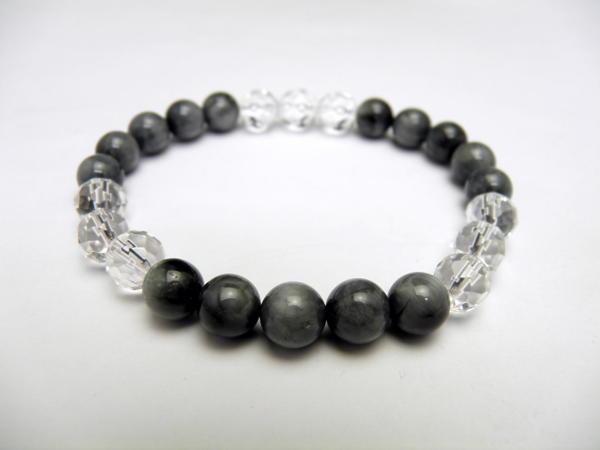 サイズ:内径/17.5cm、グレータイガーアイ8mm×15pcs、水晶64面カット8mm×9pcs