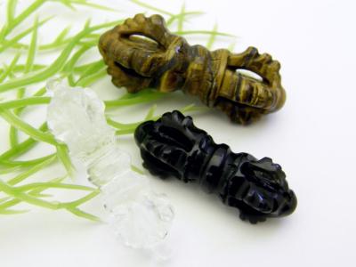 五鈷杵 ごこしょ バジュラ タイガーアイ・水晶・オブシディアン 約30mm 1個売り 密教 チベット法具
