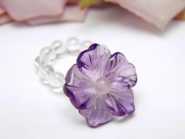 野バラのビーズリングが新登場。アメジスト:恋愛成就の石とされています。また、心の安らぎをもたらし、直観力やインスピレーションを高めるといわれています。