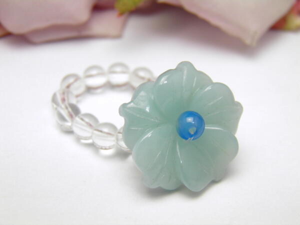 野バラのビーズリングが新登場。アマゾナイト:心と身体のバランスを保ち安定させ、ストレスを解消し思考能力や想像力などを増強する働きがあるといわれています。