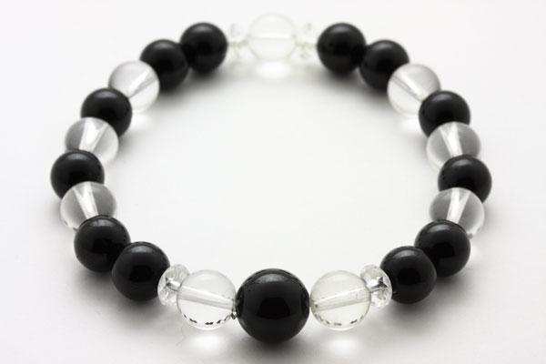 黒トルマリン:さまざまな色合いを持つトルマリンは、さまざまな事象に対応出来る、懐の深いパワーストーンです。恋愛、健康、霊的才能や美的才能の開花、全地球的な愛を育むなど、その人の目指すところを確実にサポートしてくれるとされます。電気を発する性質が強いトルマリンは、理屈抜きに「ニンゲン」に働きかけるパワーがあるとも言えます。ブラックは、グラウンディングの色であり、「大地に根を張る」象徴です。安定と落ち着き、自信と健康を養う色とされます。悩みの解決、沈着冷静、ストレス解消、大切な人との絆などのお守りにどうぞ。素 材:ブラックトルマリン、水晶。ラウンドビーズ8mm、水晶ラウンドビーズ8mm、ボタンカット、内径:17cm