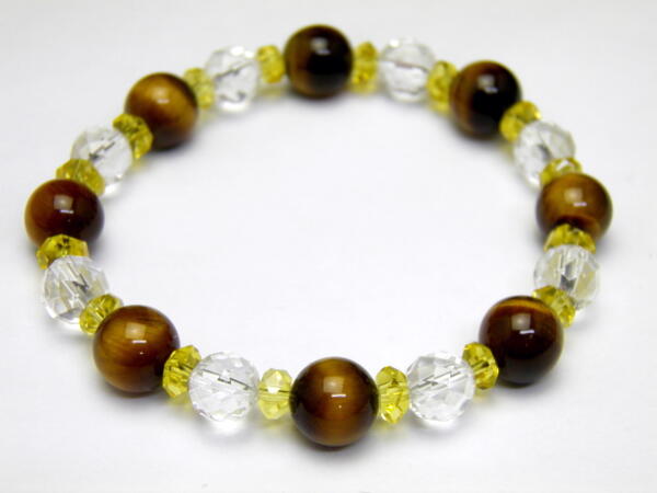 | サイズ&素 材:タイガーアイ:10mm、水晶64面カット:8mm、シトリンボタンカット:3×6mm、内径:16cm |