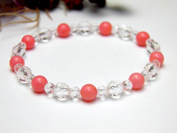 成 分:ピンク珊瑚:6mm、水晶:6mm、4mm
