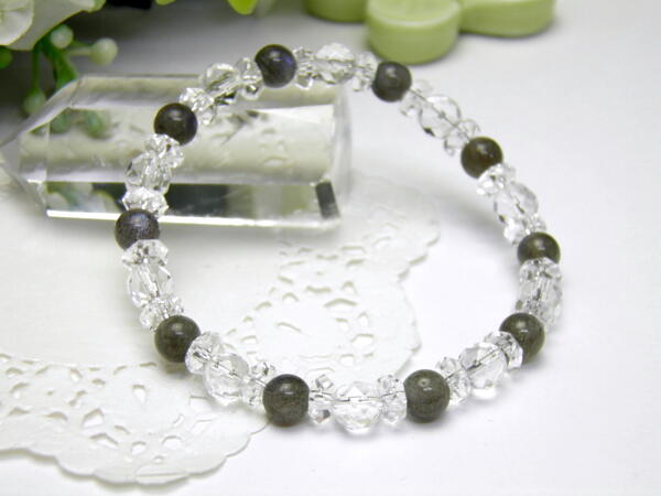 成 分:ラブラドライト:6mm、水晶:6mm、ボタン:3×6mm