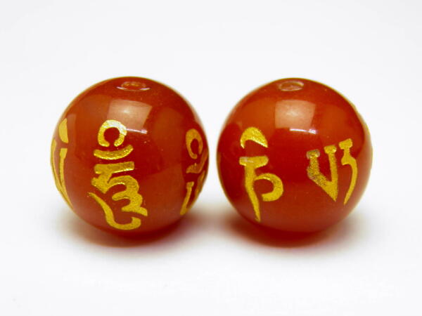 カーネリアン10mm (金) 六字真言 【彫刻 一粒売りビーズ】