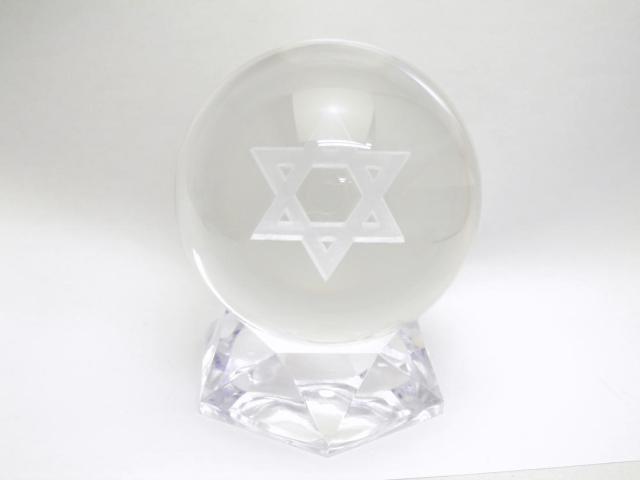 丸玉 人工水晶 六芒星(レーザー彫刻) 約80mm 送料無料 風水 パワーストーン