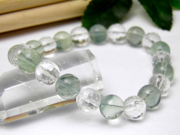 【10mm_Simple_Combiブレスレット】 グリーンフローライト&水晶 天然石 パワーストーン