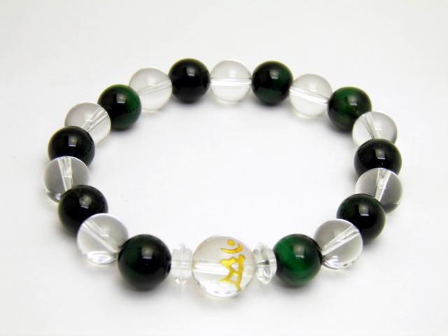 水晶 金彫り 守護梵字 1ポイント グリーンタイガーアイ&水晶 ブレスレット 天然石 風水 パワーストーン