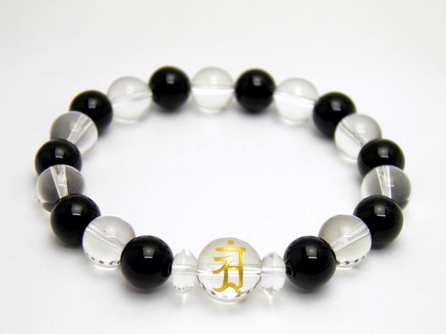 水晶 金彫り 守護梵字 1ポイント オニキス&水晶 ブレスレット 天然石 風水 パワーストーン