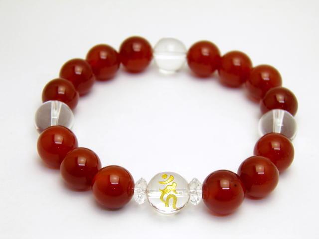 水晶 金彫り 守護梵字 1ポイント レッドメノウ ブレスレット天然石 風水 パワーストーン