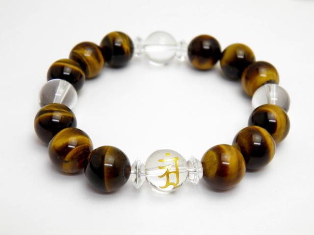 水晶 金彫り 守護梵字 1ポイント タイガーアイ ブレスレット 天然石 風水 パワーストーン