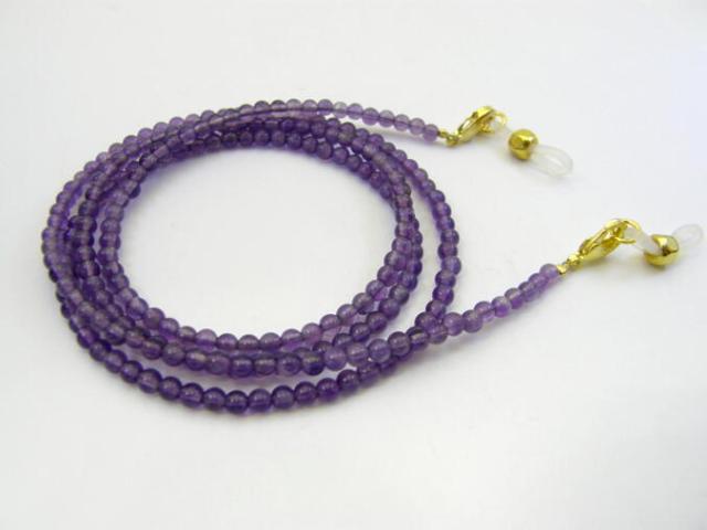 2月の誕生石 天然石のアメジストのメガネチェーン 4mm(金) パワーストーンのメガネチェーン マスクチェーン マスクストラップ メガネストラップ ネックレス 眼鏡チェーン グラスコード プチギフト 転勤 退職 お礼 母の日 敬老の日 クリスマス ギフト