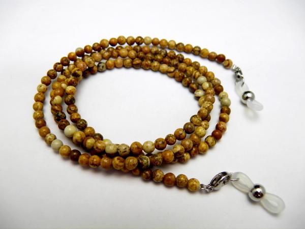天然石のピクチャージャスパーのメガネチェーン・パワーストーンのメガネチェーン マスクチェーン マスクストラップ メガネストラップ ネックレス 眼鏡チェーン グラスコード