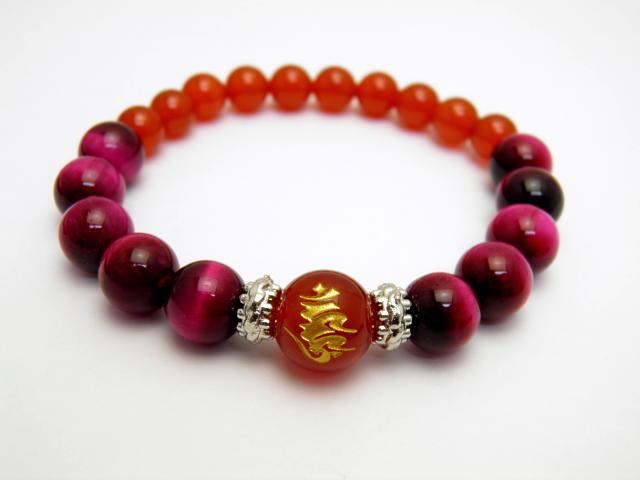 ウーン 愛染明王 (あいぜんみょうおう) カーネリアン ブレスレット 梵字玉 数珠 各色タイガーアイ 天然石 風水 パワーストーン