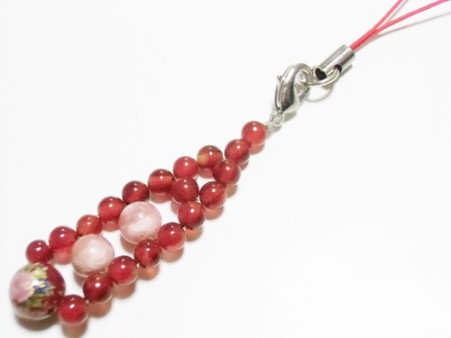 薔薇プリント8mm(カーネリアン)&カーネリアン+インカローズ 手編みストラップ 天然石 パワーストーン