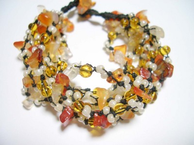 カーネリアン&ビーズ 7連ブレスレット 天然石 パワーストーン