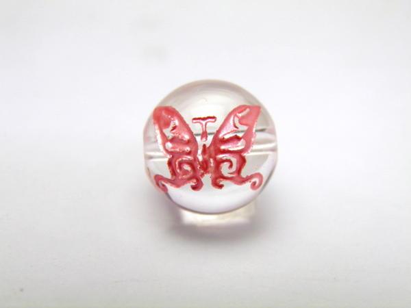 トライバル彫アゲハ蝶 ピンク彫水晶 8mm【彫刻 一粒売りビーズ】 天然石 パワーストーン