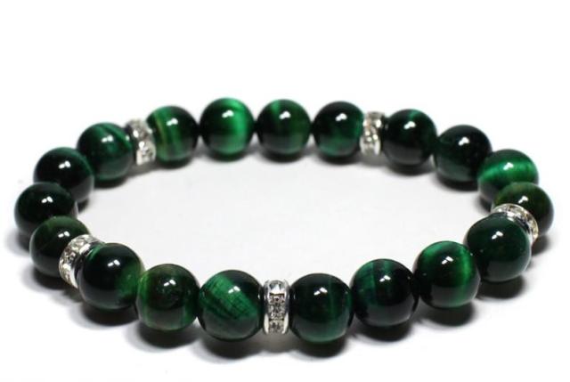 【ロンデルデザインブレスレット】 グリーンタイガーアイ 10mm 天然石 パワーストーン