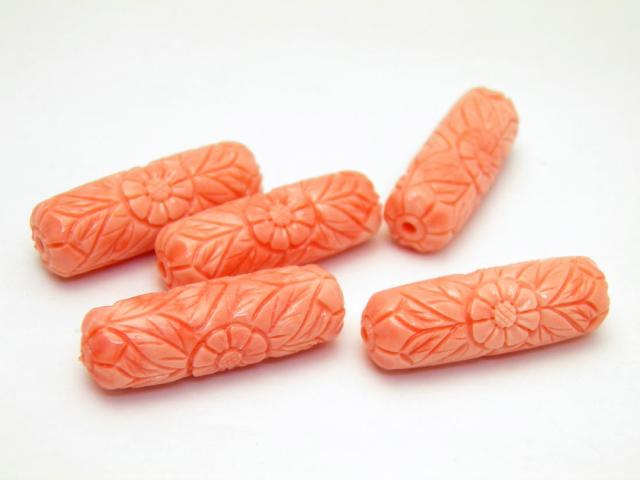 天珠型フラワー彫刻のピンクシェールです。フラワーが彫り込まれています。ピンクシェルはシェルの粉を練り上げて作っています。