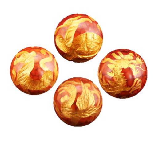 四神獣セット 龍紋メノウ 金彫り 彫刻ビーズ 10mm玉 青龍・朱雀・白虎・玄武 天然石 パワーストーン