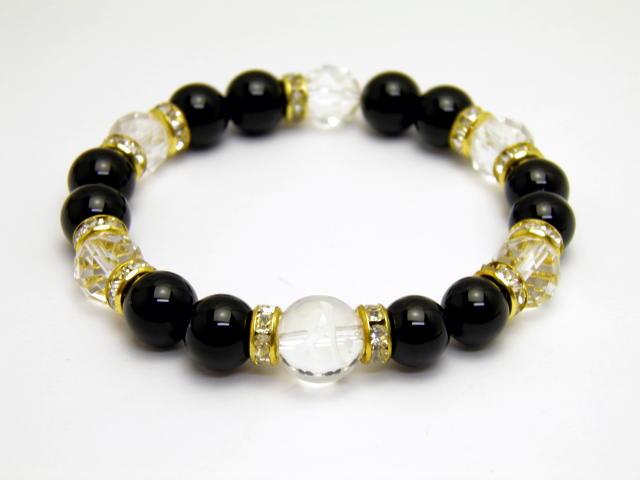 | 素 材&サイズ: 水晶/約12mm、水晶・オニキス:10mm、内径:18cm |