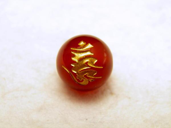 【彫刻ビーズ】愛染明王 レッドメノウ 12mm (金彫り) 「梵字」 ウーン 手作りにオススメ! 天然石 パワーストーン
