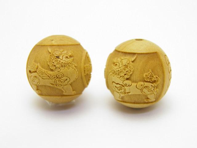 貔貅 (ヒキュウ)柘植玉 15mm【穴あり一粒売りビーズ】