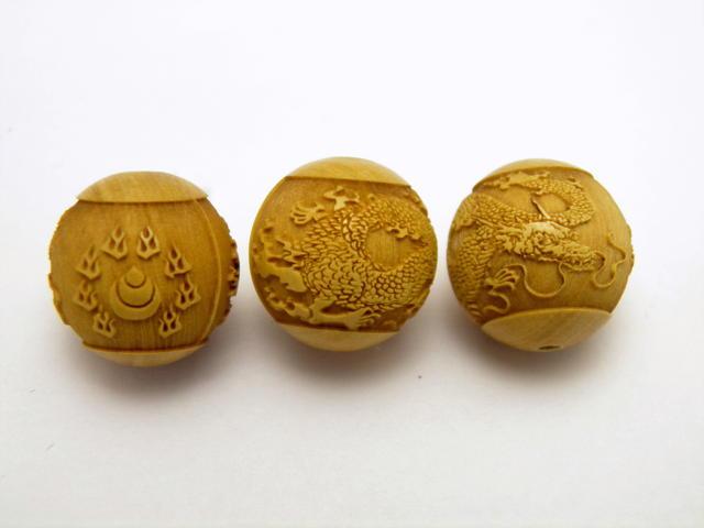 五爪 皇帝龍 火球宝珠 柘植玉 彫刻ビーズ 縦穴 15mm 【穴あり一粒売りビーズ】