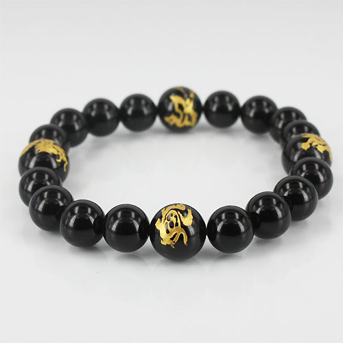 天然石 四神獣ブレスレット 四神獣(オニキス)金彫りオニキス パワーストーン 四神相応数珠ブレスレット 金運 バラ売り メンズ レディース 四神獣パワーストーン パワーストーン四神獣 パワーストーン