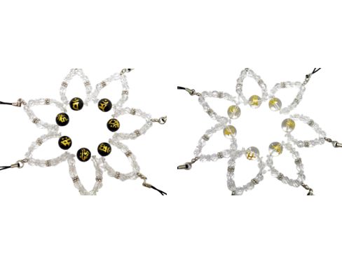 | 成 分&サイズ:全長約9cm、天然水晶金彫梵字約12mm/オニキス金彫梵字約12mm、天然水晶64面カット約6mm |