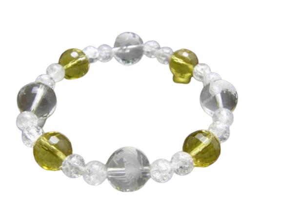 | 素 材&サイズ:、水晶四神獣彫り:12mm、シトリン:10mm、クラック水晶:6mm、内径:約15cm |