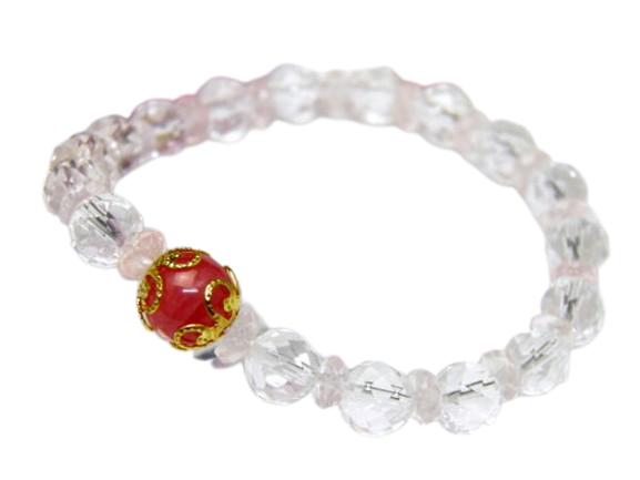 | 素 材:インカローズ:10mm、水晶:8mm、ローズクォーツボタン:3×6mm サイズ:内径:約17cm |