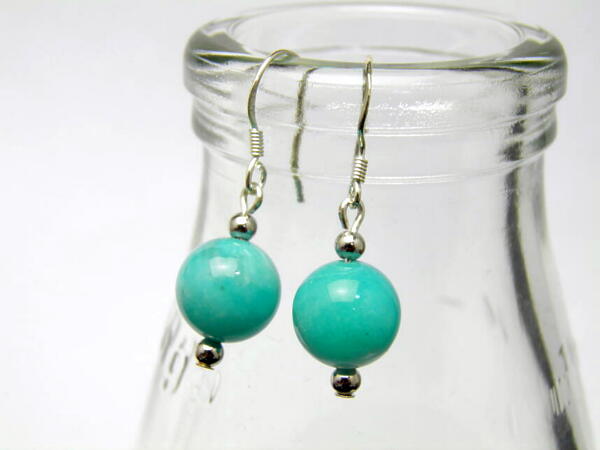 アマゾナイト:心と身体のバランスを保ち安定させ、ストレスを解消し思考能力や想像力などを増強する働きがあるといわれています。心身の安定のピアスです。