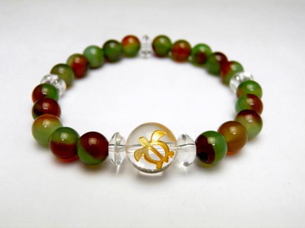 ホヌが彫られた彫刻ビーズで組んだ夏ブレスレット!ウミガメのモチーフとされているホヌです☆サーファーアクセサリーなどによく用いられています。